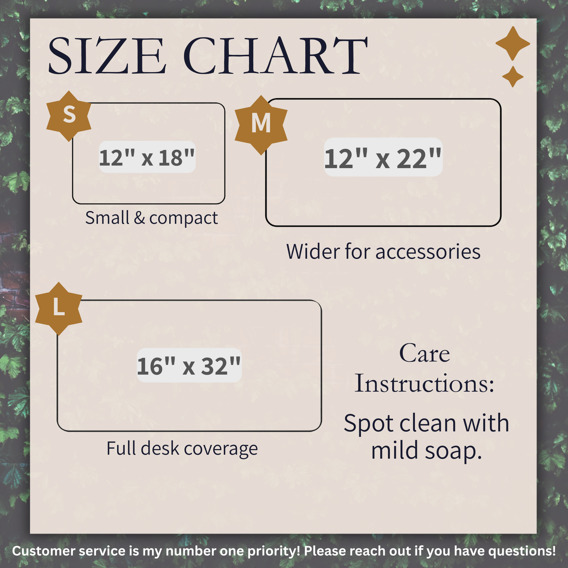 🟆 SIZING: Desk mats come in three sizes. See images for exact measurements.